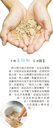 我們習慣與化學合成的產品為伴,要減用或拒用,野人以過來人教路:「要有大洗底的心理準備,跟自己說,習慣不等於 正確,例如習慣要以好多泡沫去洗碗,習慣冲完涼要有香味,這不等於正確。放低以前一套,嘗試以天然方式生活,自己比對一下,再想想怎樣為之乾淨?自己的需 要是什麼?是否要有香味才叫乾淨?這是給廣告定義影響,還是自己的真正想法?」