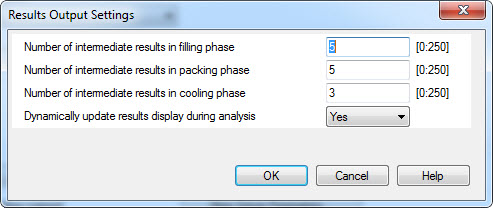 If this value is a much larger increment in comparison to the number of intermediate time step results entered, the Moldflow solver cannot write as many intermediate results as are being requested